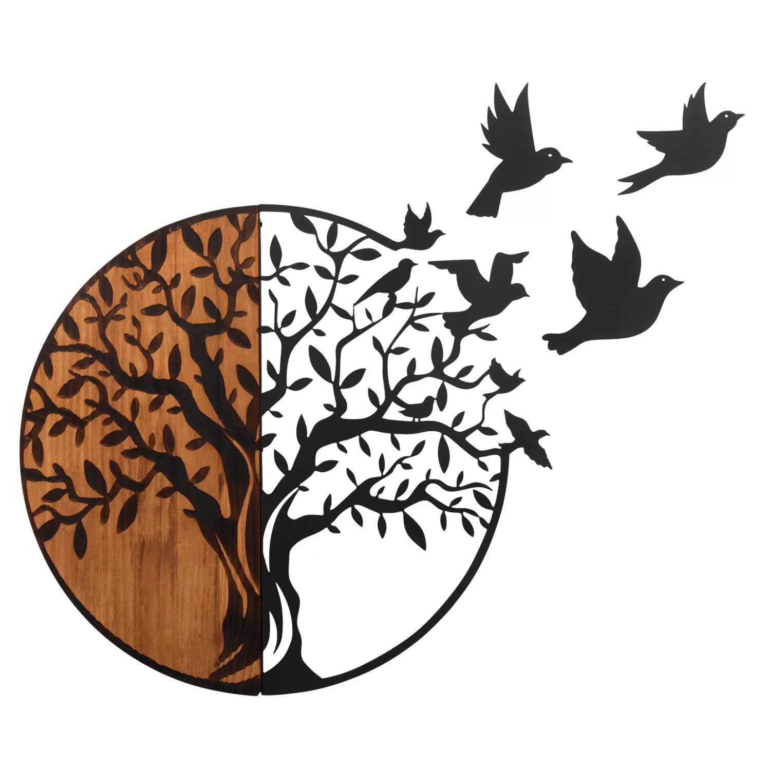 Θέλετε να τραβήξετε τα βλέμματα με κάτι όμορφο στον χώρο σας; Μην διστάσετε να διακοσμήσετε τον τοίχο σας με ένα κομμάτι wall art. Το ΗΜ4647 είναι ένα διακοσμητικό τοίχου κατά βάση στρογγυλό και απεικονίζει ένα δέντρο και πουλιά, και είναι κατασκευασμένο από μέταλλο και ξύλο. Το εντυπωσιακό είναι ότι το μισό δέντρο είναι σκαλιστό στο ξύλινο μέρος του διακοσμητικού! Μπορείτε όμως να φανταστείτε την χρησιμότητά τέτοιων διακοσμητικών;