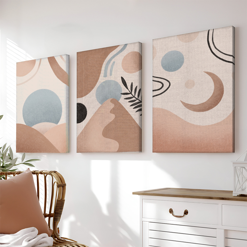 Μετατρέψτε τον τοίχο σας σε έργο τέχνης με τον τριπτυχικό πίνακα Leberto. Φέρνει τη ζεστασιά της φύσης και την ηρεμία του αφηρημένου στυλ στον χώρο σας. Είναι η ιδανική προσθήκη για σαλόνια, υπνοδωμάτια ή γραφεία που αναζητούν μια μινιμαλιστική, boho ή scandi πινελιά.