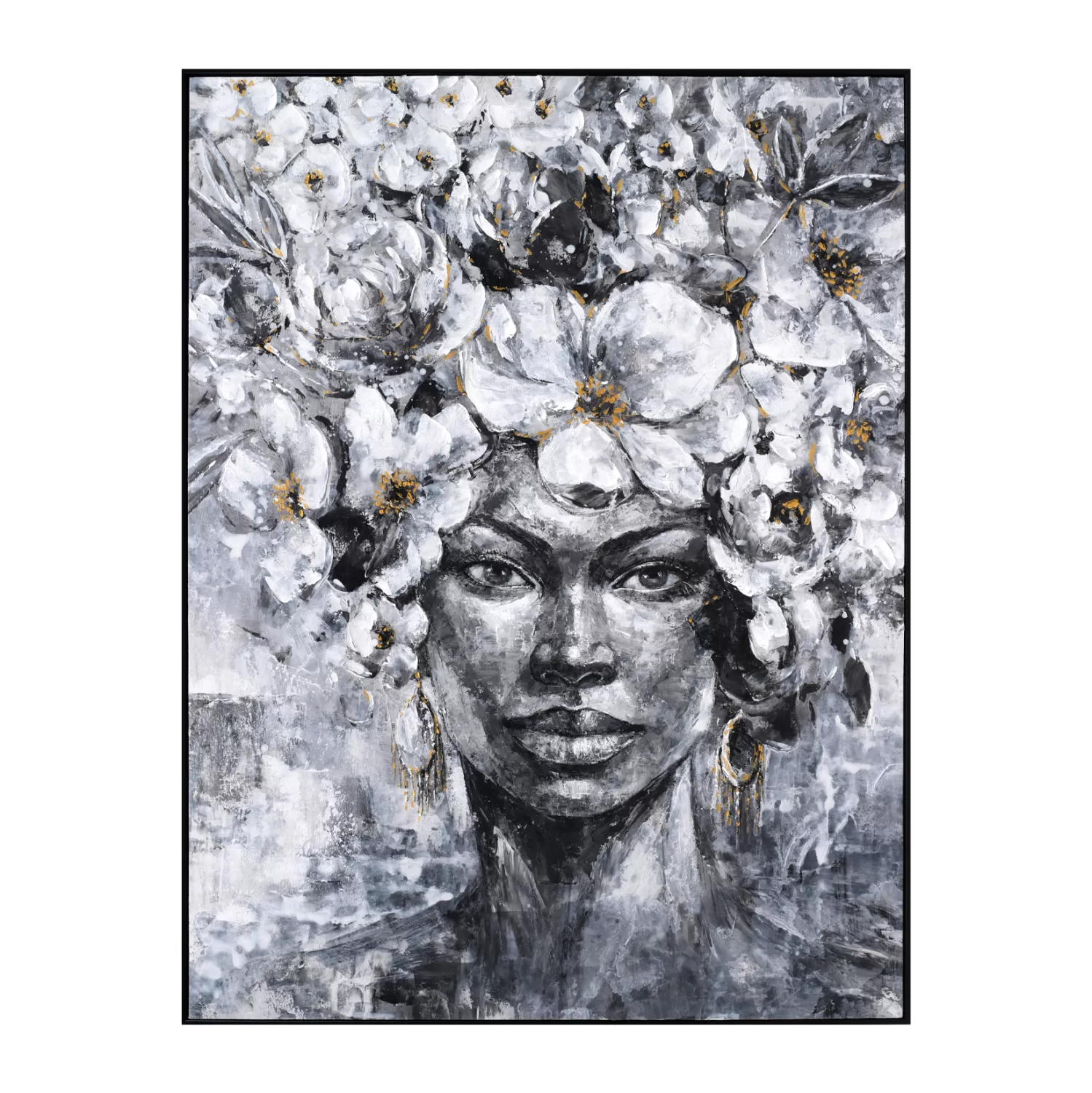 Ανάμεσα σε όλα τα διακοσμητικά στοιχεία, τα έργα τέχνης και ειδικά οι πίνακες ζωγραφικής παίζουν εξέχοντα ρόλο: όχι μόνο προσθέτουν χρώμα και αισθητική ομορφιά, αλλά δίνουν επίσης βάθος και νόημα στον χώρο μας. Ένας πίνακας μεταμορφώνει τον τρόπο που αντιλαμβανόμαστε έναν χώρο. Διακοσμήστε, λοιπόν, τον χώρο σας με έναν από τους καινούργιους πίνακες που προστέθηκαν στην γκάμα μας! Αυτός ο πίνακας απεικονίζει το πρόσωπο μιας γυναίκας και είναι ζωγραφισμένος κατά 80% με το χέρι σε καμβά με εκτύπωση. Η κορνίζα είναι μαύρη από πολυστυρένιο.