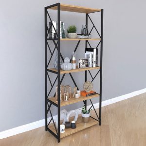 Ραφιέρα τοίχου Garel σε καρυδί-ανθρακί απόχρωση 53,8×19,6×108εκ