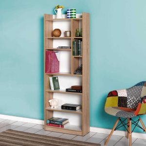 Ραφιέρα τοίχου Garel σε oak-ανθρακί απόχρωση 53,8×19,6×108εκ