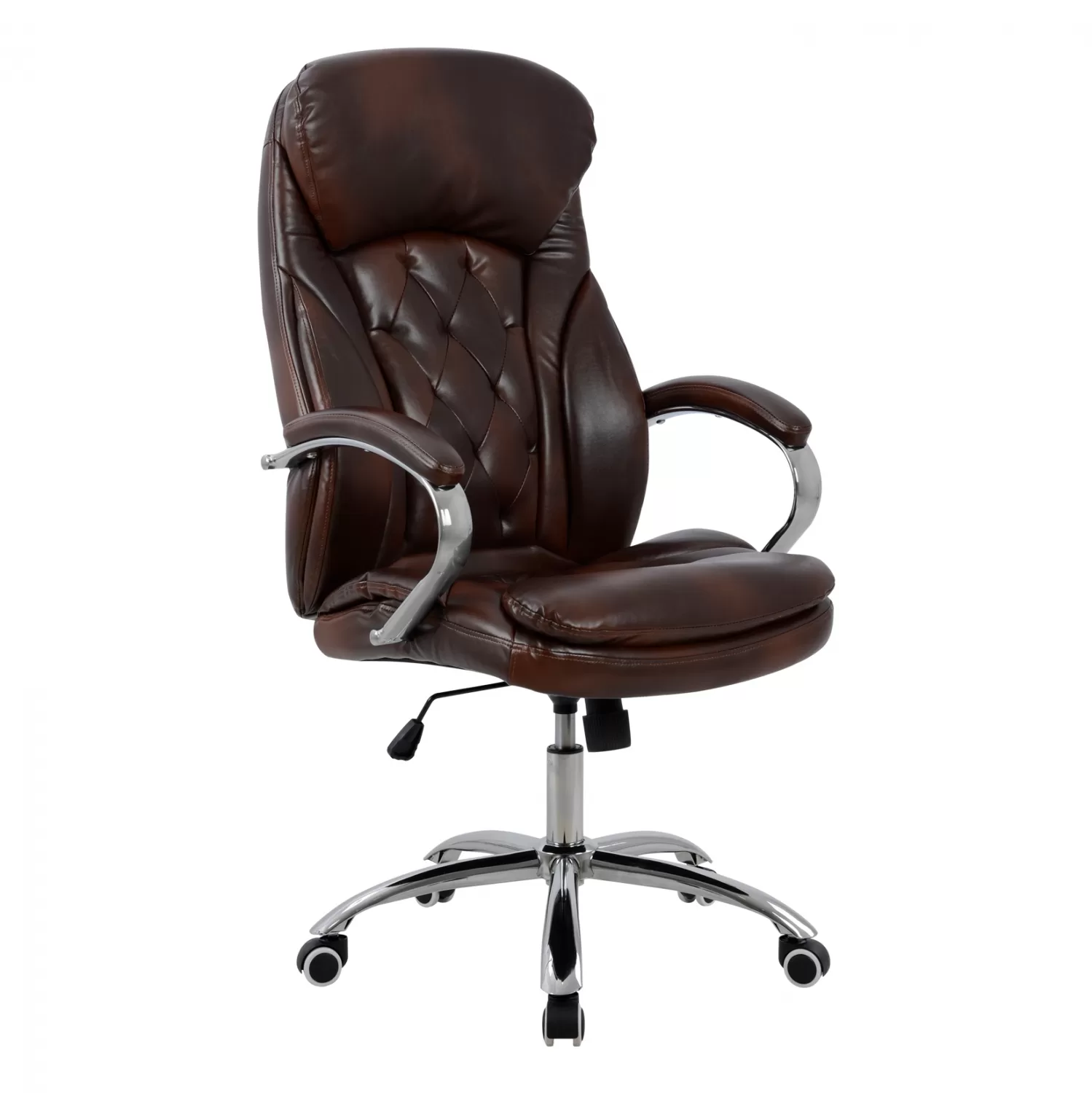 Καρέκλα γραφείου διευθυντική από PU υψηλής ποιότητας σε καφέ απόχρωση και μοναδικό κλασικό design.