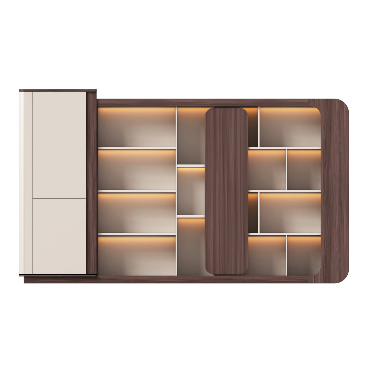 Βιβλιοθήκη Γραφείου PRESIDENT με LED Φωτισμό και Διχρωμία Καρυδί – Μπεζ