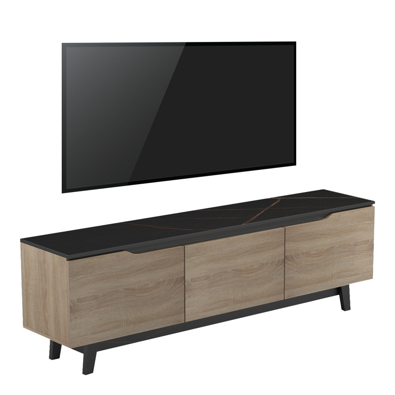 Έπιπλο τηλεόρασης Kasandra σε μαύρο μαρμάρου-sonoma απόχρωση 180x35x48.5εκ