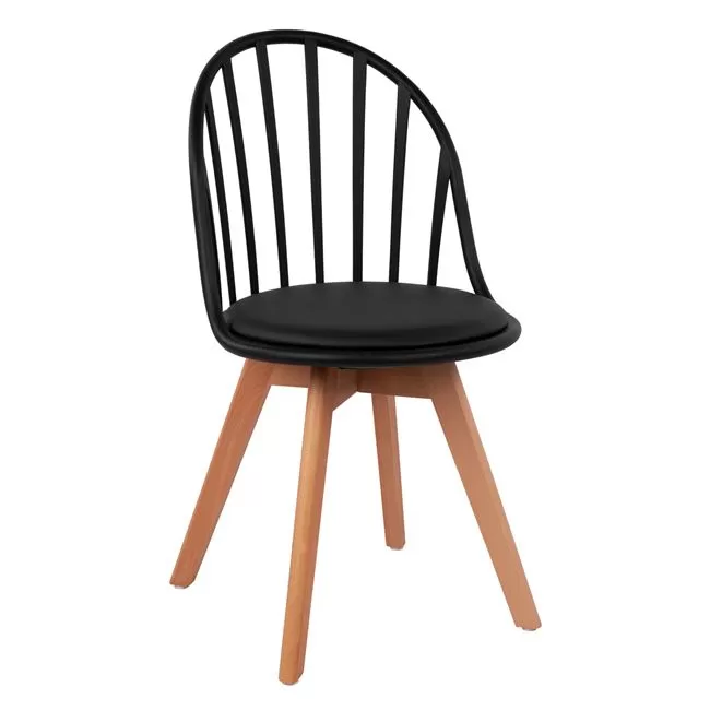 Καρέκλα ALINA, από πολυπροπυλένιο και κάθισμα από PU σε μαύρο χρώμα, πόδια από ξύλο οξιάς σε φυσική απόχρωση.