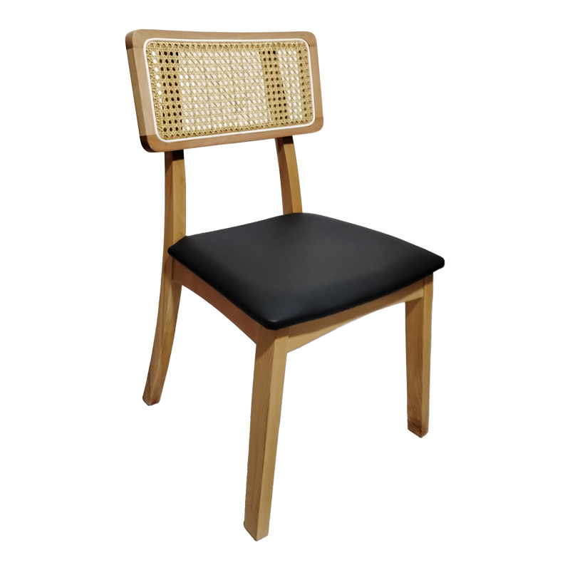 Καρέκλα Renna ξύλο οξιάς σε φυσική απόχρωση με μαύρο pu μαξιλάρι 48x52x79εκ -Τιμή Σετ 2 τεμ.