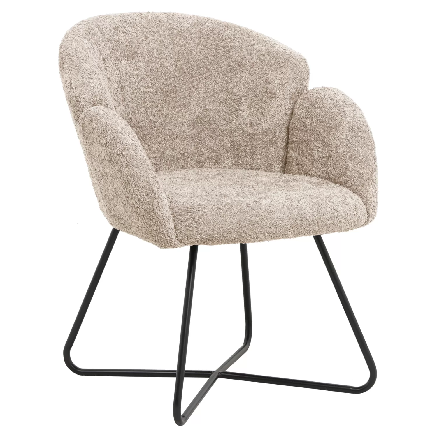 Η πολυθρόνα HARNIS είναι μοντέρνα και άνετη. Το κυρίαρχο χρώμα είναι το ΜΠΕΖ, ενώ αντί για πόδια διαθέτει μια βάση σε χιαστί διάταξη και μαύρο χρώμα. Η επένδυση της πολυθρόνας έχει γίνει με ζεστό ΜΠΟΥΚΛΕ ύφασμα που θα δώσει μια διαφορετική όψη στον χώρο σας. Πρόκειται για μια πρόταση όμορφη που θα ταιριάξει σχεδόν παντού!