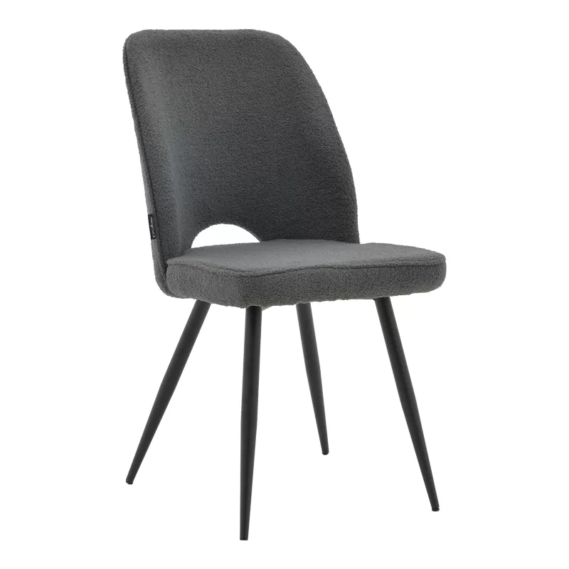 Καρέκλα Renish μπουκλέ γκρι-μεταλλικό μαύρο πόδι