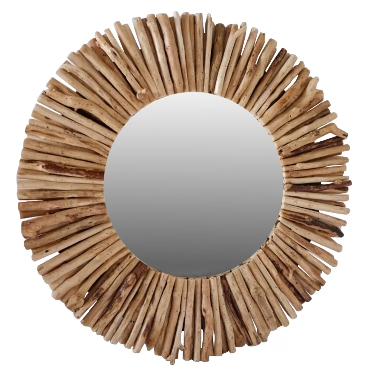 O καθρέπτης ΗΜ7720 είναι πραγματικά ένα εντυπωσιακό κομμάτι στην διακόσμηση του σπιτιού σας! Το design του είναι μοναδικό με την αριστοτεχνικά κατασκευασμένη κυκλική διάταξη των θαλασσόξυλων, τα οποία στο κέντρο τους «φιλοξενούν» τον καθρέπτη. Τα ξύλα είναι στο φυσικό τους χρώμα και οι διαστάσεις όλης της κατασκευής είναι ικανοποιητικές.