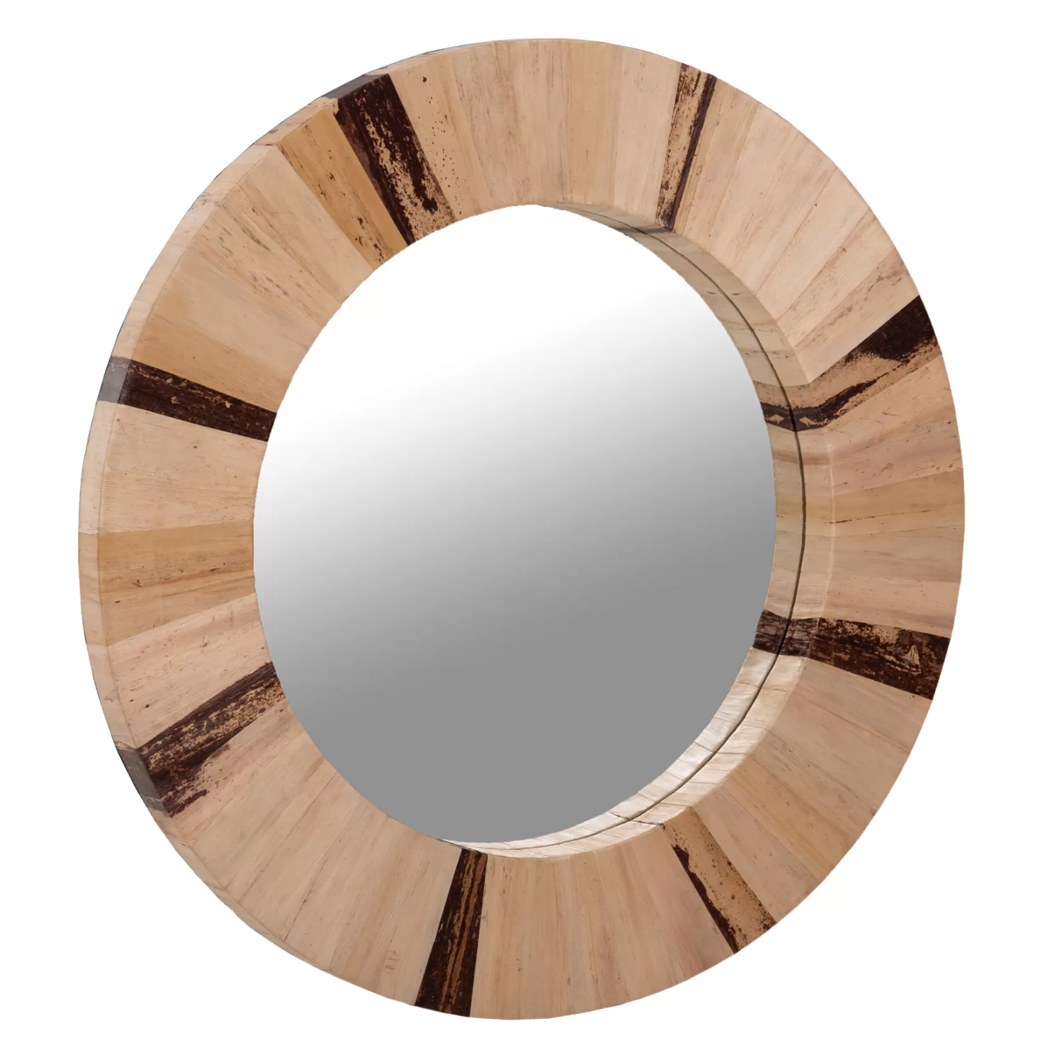 O καθρέπτης ΗΜ7837 από την νέα γκάμα των προϊόντων μας, είναι πραγματικά ένα εντυπωσιακό κομμάτι στην διακόσμηση του χώρου σας! Το design του είναι μοναδικό με το αριστοτεχνικά κατασκευασμένο στρογγυλό πλαίσιο από αποξηραμένες ίνες φύλλων φοίνικα, τα οποία δίνουν πλέον μια ξυλώδη αίσθηση. Οι ίνες (τα φύλλα) είναι στο φυσικό τους χρώμα και οι διαστάσεις όλης της κατασκευής είναι ικανοποιητικές.