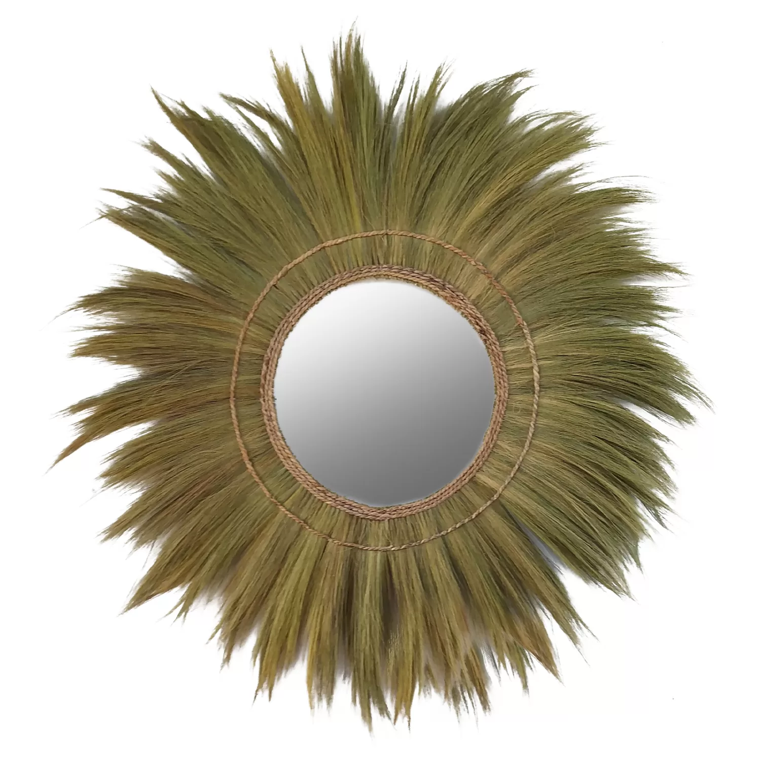 O καθρέπτης ΗΜ7734 είναι πραγματικά ένα εντυπωσιακό κομμάτι στην διακόσμηση του χώρου σας! Το design του είναι μοναδικό με το αριστοτεχνικά κατασκευασμένο πλαίσιο από ίνες φλοιού μπανάνας, το οποίο στο κέντρο του «φιλοξενεί» τον καθρέπτη. Οι ίνες είναι στο φυσικό τους χρώμα και οι διαστάσεις όλης της κατασκευής είναι μεγάλες.