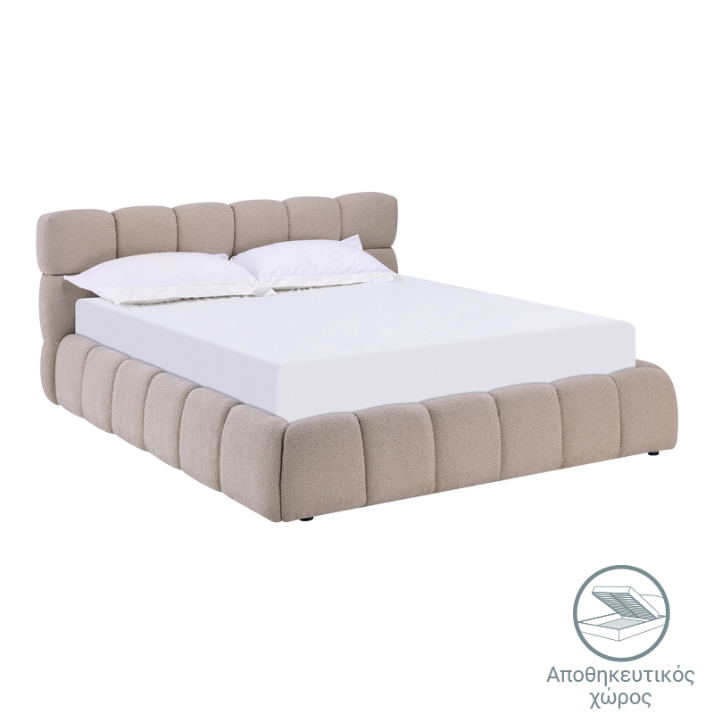 Κρεβάτι Jeby ύφασμα σε μπεζ απόχρωση με αποθηκευτικό χώρο 160×200εκ