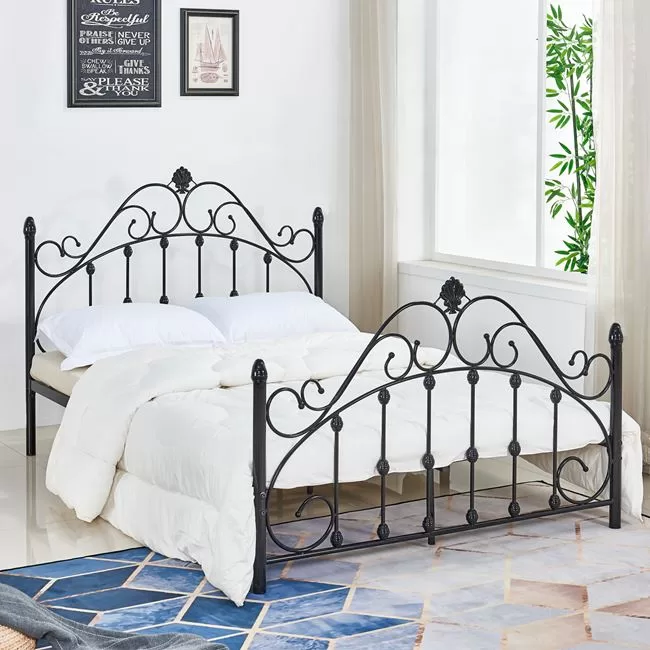Το κρεβάτι ΗΜ576.01 είναι ένα μεταλλικό κρεβάτι σε ΜΑΥΡΟ χρώμα και σε διάσταση διπλού στρώματος. Το ψηλό κεφαλάρι και το ελαφρώς κοντύτερο ποδαρικό (δηλαδή το κάτω μέρος απέναντι από το κεφαλάρι) φέρουν καλαίσθητα σχέδια από μέταλλο και αισθητικά είναι σίγουρο ότι θα τραβήξει τα βλέμματα και θα απογειώσει το υπνοδωμάτιό σας. Τα πόδια του κρεβατιού είναι ψηλά με αποτέλεσμα να υπάρχει αρκετός χώρος από κάτω για να τον χρησιμοποιήσετε όπως θέλετε, ενώ το ποδαρικό φτάνει μέχρι χαμηλά, δίνοντας την εντύπωση ότι πατάει στο έδαφος. Οι τάβλες στήριξης του στρώματος είναι φυσικά και αυτές μεταλλικές.