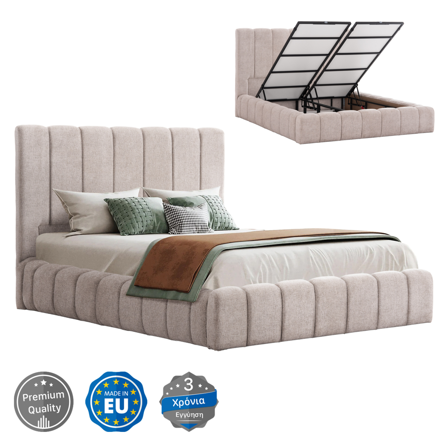 ΚΡΕΒΑΤΙ REMO ΜΕ ΑΠΟΘΗΚΕΥΤΙΚΟ ΧΩΡΟ ΥΦΑΣΜΑ TEDDY ΜΠΕΖ-ΓΙΑ ΣΤΡΩΜΑ 160×200εκ