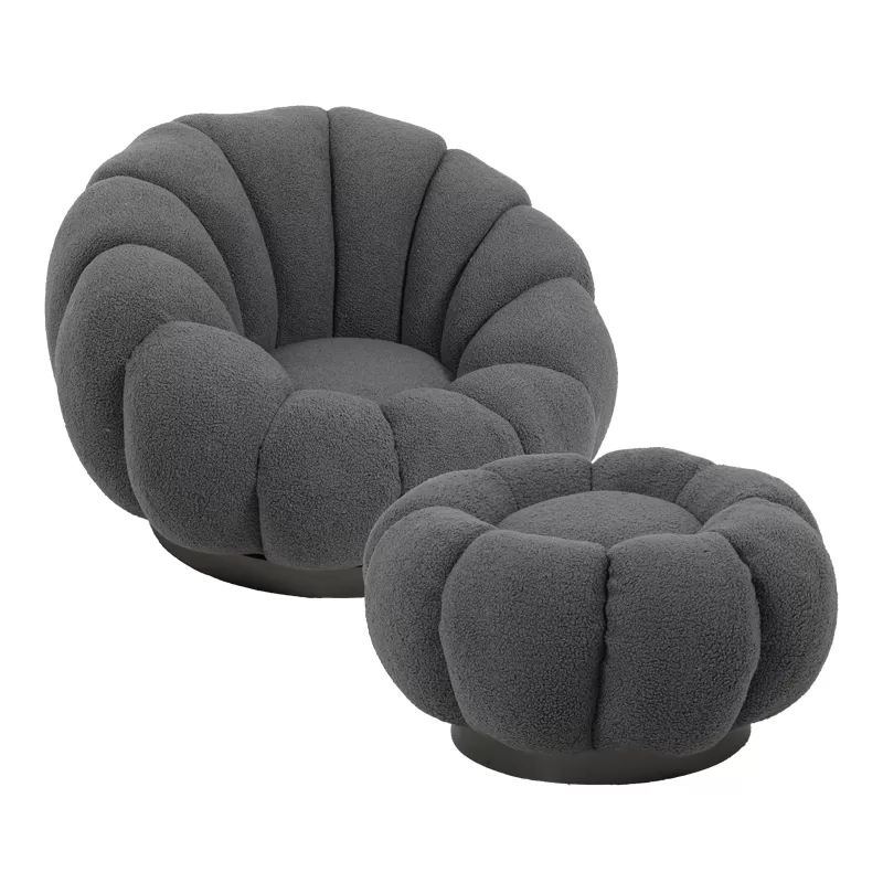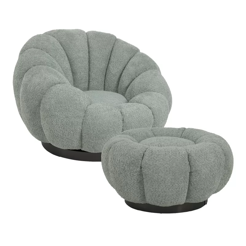 Πολυθρόνα περιστρεφόμενη με σκαμπό Nester μπουκλέ ύφασμα σε γκρι απόχρωση 98x97x69εκ