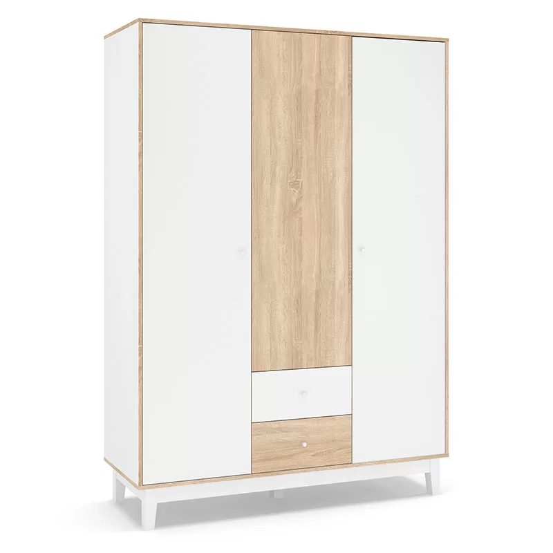 Ντουλάπα Awell τρίφυλλη sonoma-λευκό 153.5x54.5x216εκ