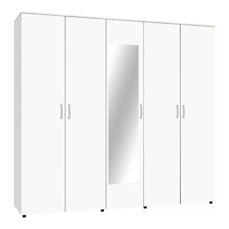 Ντουλάπα πεντάφυλλη με καθρέφτη Luna σε λευκή απόχρωση 220x52x200εκ