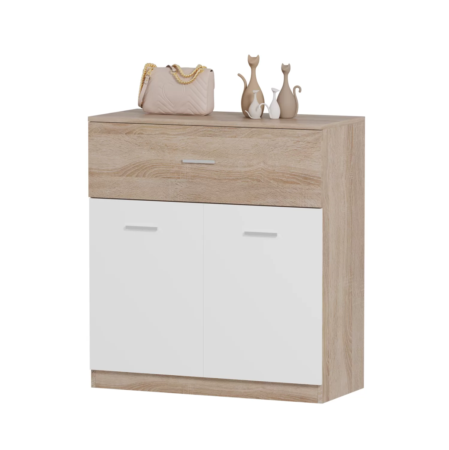 Σας παρουσιάζουμε την παπουτσοθήκη μελαμίνης DIONNE σε SONAMA και ΛΕΥΚΟ χρώμα. Ένα έπιπλο με κλασικό σχεδιασμό ντουλαπιού, που εκτός από χώρο αποθήκευσης παπουτσιών, διαθέτει και συρτάρι για να αποθηκεύετε οτιδήποτε χρειαστείτε. Ο χώρος αποθήκευσης διαθέτει ένα ράφι που δημιουργεί 2 χώρους τοποθέτησης παπουτσιών και κλείνει με δύο πόρτες με όμορφα ασημί χερούλια. Σκοπός μας είναι να σας βοηθήσουμε να οργανώσετε και να βελτιώσετε με τον καλύτερο δυνατό τρόπο την λειτουργικότητα του σπιτιού σας.