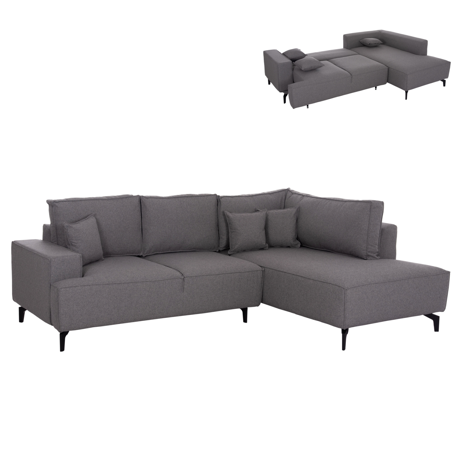 ΓΩΝΙΑΚΟΣ ΚΑΝΑΠΕΣ-ΚΡΕΒΑΤΙ ΜΕ ΑΠΟΘ.ΧΩΡΟ SAFFIRA ΓΚΡΙ ΥΦΑΣΜΑ 270x195x100Υεκ.