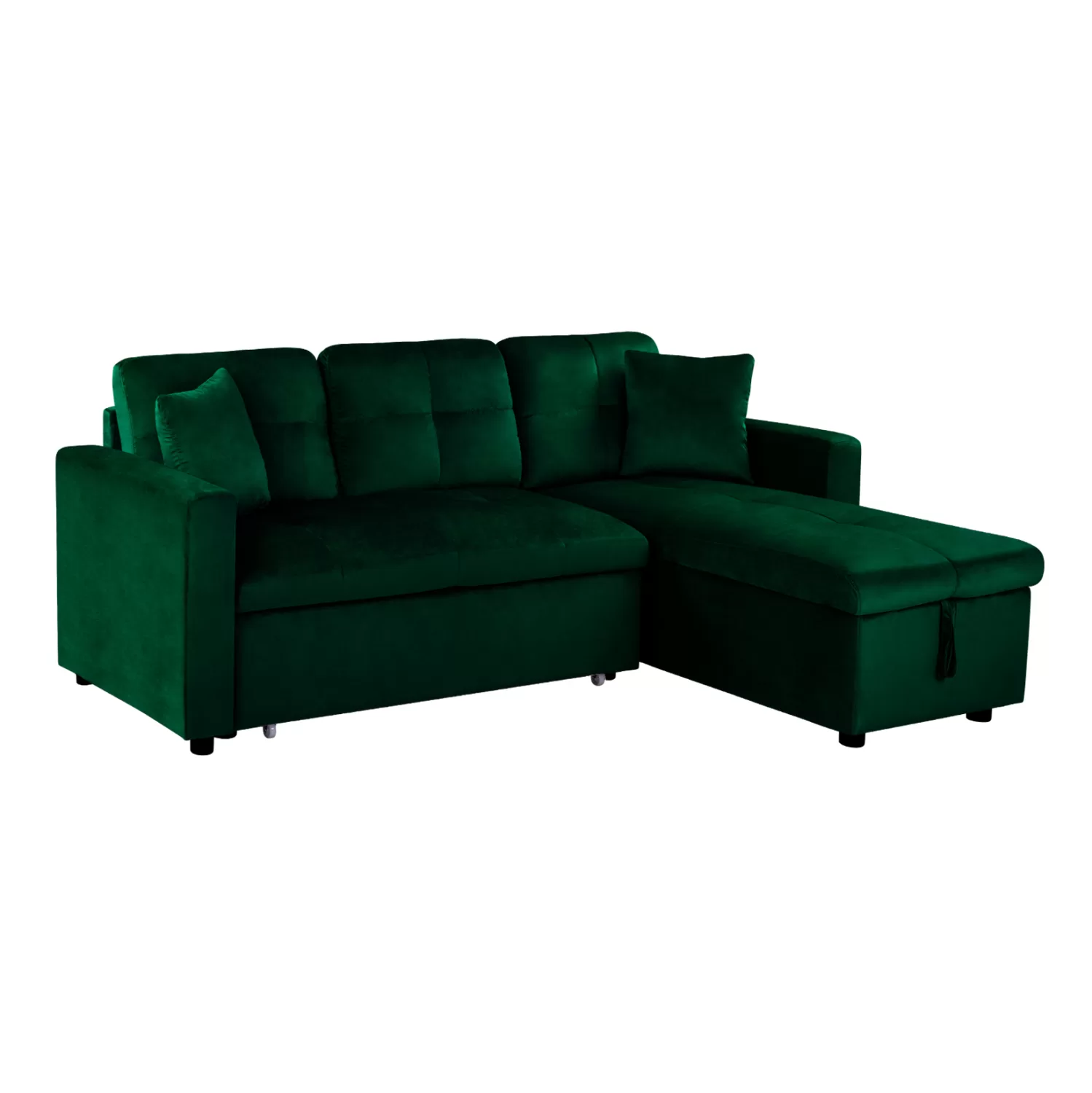 Ο καναπές γωνία διαθέτει συρόμενο τμήμα το οποίο χάρη στα υφασμάτινα χερούλια, μετατρέπεται με μία κίνηση σε άνετο κρεβάτι.