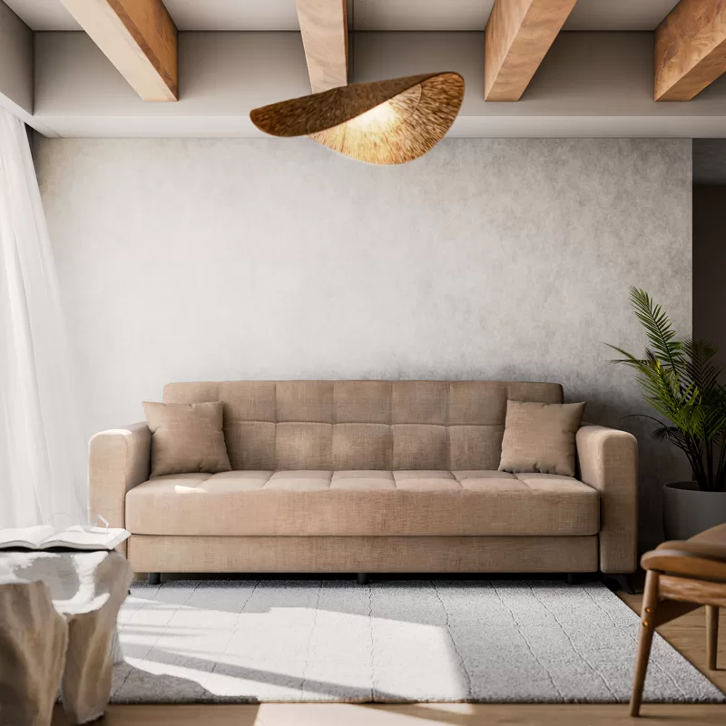 Καναπές-κρεβάτι με αποθηκευτικό χώρο τριθέσιος Modesto ανοιχτό καφέ ύφασμα 215x85x80εκ