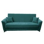 Τριθέσιος καναπές-κρεβάτι κλικ-κλακ κατασκευασμένος από ξύλινο σκελετό (βαρέους τύπου), υψηλής ποιότητας και υφασμάτινη βελούδινη επένδυση σε χρώμα βεραμαν.Με γωνιακά πόδια ύψους 5εκ, σε απομίμηση ξύλου και ενισχυμένο αποθηκευτικό χώρο με επένδυση μελαμίνης, καθώς και υφασμάτινη επένδυση στην πλάτη. Ο καναπές διαθέτει σύστημα ανοίγματος κλικ κλακ για εύκολη χρήση και έχει έξτρα βοηθητικά πόδια για καλύτερη στήριξη. Ιδανική και κομψή επιλογή καθώς διαθέτει αποθηκευτικό χώρο και μπορεί να συνδυαστεί με μεγάλη ποικιλία χρωμάτων και επίπλων. Διαθέτει επίσης δύο διακοσμητικά μαξιλαράκια στον ίδιο χρώμα με τον καναπέ.