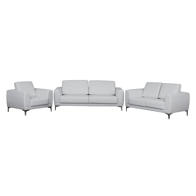 Το σετ διατίθεται σε συσκευασία 3 τεμαχίων και αποτελείται από μια πολυθρόνα, ένα διθέσιο και ένα τριθέσιο καναπέ, δημιουργώντας μια ολοκληρωμένη και αρμονική εικόνα. Οι γεωμετρικές γραμμές και οι μαλακές επιφάνειες του καθιστούν το σύνολο ιδανικό για σύγχρονους χώρους διαβίωσης, αλλά και για περιπτώσεις επαγγελματικών χώρων αναμονής που επιθυμούν μια φιλόξενη και εντυπωσιακή ατμόσφαιρα.