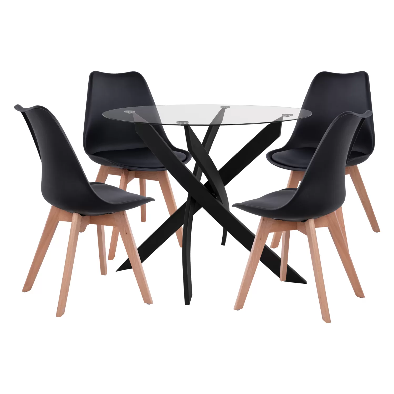 Τέσσερεις μοντέρνες καρέκλες σε έναν άψογο συνδυασμό ξύλου-πολυπροπυλενίου-τεχνοδέρματος σε μαύρη και φυσική απόχρωση. Μια πρόταση που θα αναδείξει κάθε γωνία του σπιτιού σας.