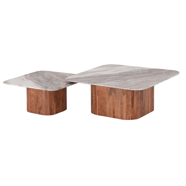 Τα VOLTI είναι κομψά τετράγωνα τραπέζια για το σαλόνι με επιφάνεια από ΓΚΡΙ ΜΑΡΜΑΡΟ. Οι βάσεις είναι από ποιοτικό ξύλο ακακίας σε φυσικό χρώμα. Ο συνδυασμός μαρμάρου και ξύλου είναι διαχρονικός και χαρίζει στυλ και κύρος σε κάθε χώρο.