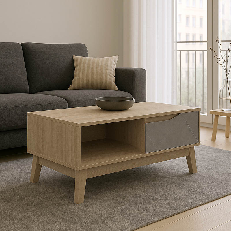Τραπέζι σαλονιού Judas σε μπεζ μαρμάρου-sonoma απόχρωση 90x45x38.5εκ