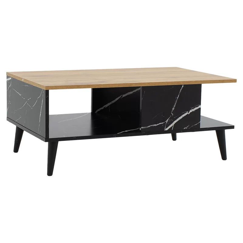 Τραπέζι σαλονιού Moses χρώμα sonoma-μαύρο μαρμάρου 90x54x37.5εκ