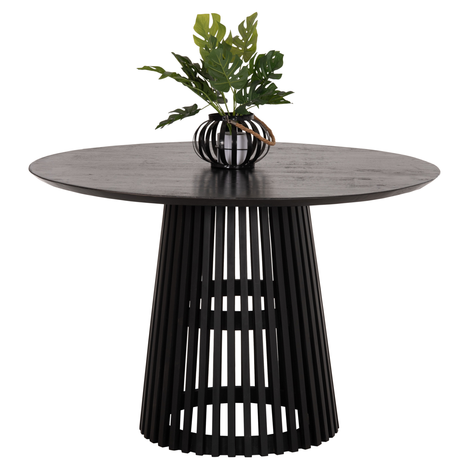 Το FRANTZ είναι ένα στρογγυλό τραπέζι για την τραπεζαρία, με ικανοποιητικές διαστάσεις σε ΜΑΥΡΟ χρώμα. Η φαλτσοκομμένη επιφάνεια στηρίζεται σε μια ξύλινη κατασκευή στο κέντρο με πολλές δοκούς σε κυκλική διάταξη που ενώνονται μεταξύ τους με δακτυλίους στην εσωτερική πλευρά. Αυτό το τραπέζι θα αναβαθμίσει αισθητικά την τραπεζαρία σας ενώ μπορεί να ταιριάξει με πολλά διαφορετικά στυλ και χρώματα στον τριγύρω χώρο, όπως και με διαφορετικά στυλ καρέκλας.