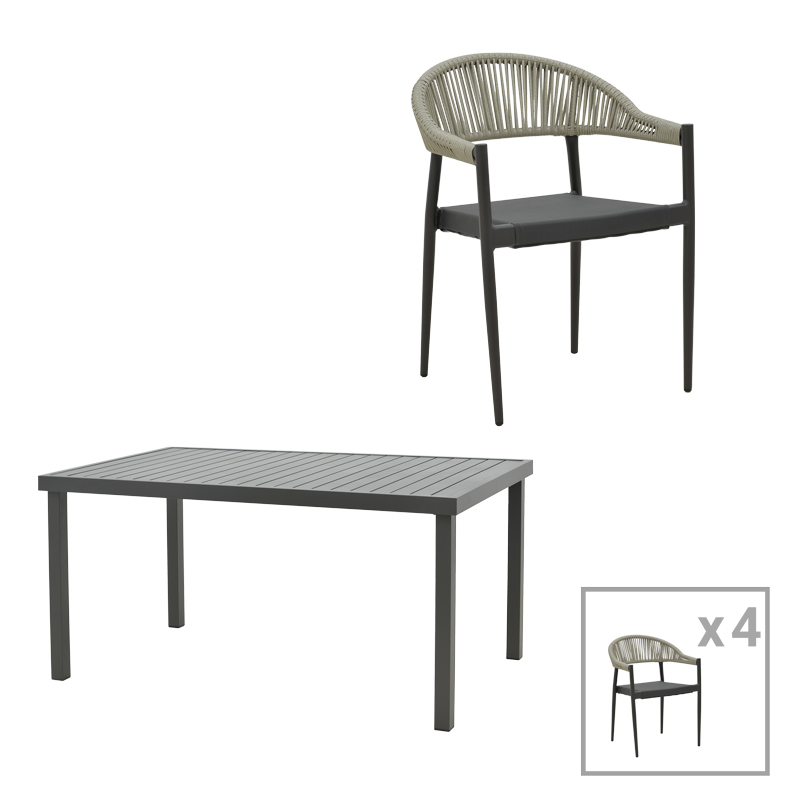 Τραπεζαρία Elation-Kliton A σετ 5τεμ αλουμίνιο σε ανθρακί απόχρωση 150x80x74εκ