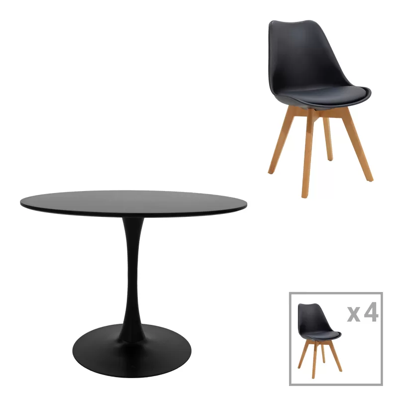 Τραπεζαρία Gaston-Balou σετ 5τεμ pp-mdf σε μαύρη-φυσικό απόχρωση Φ100×73εκ