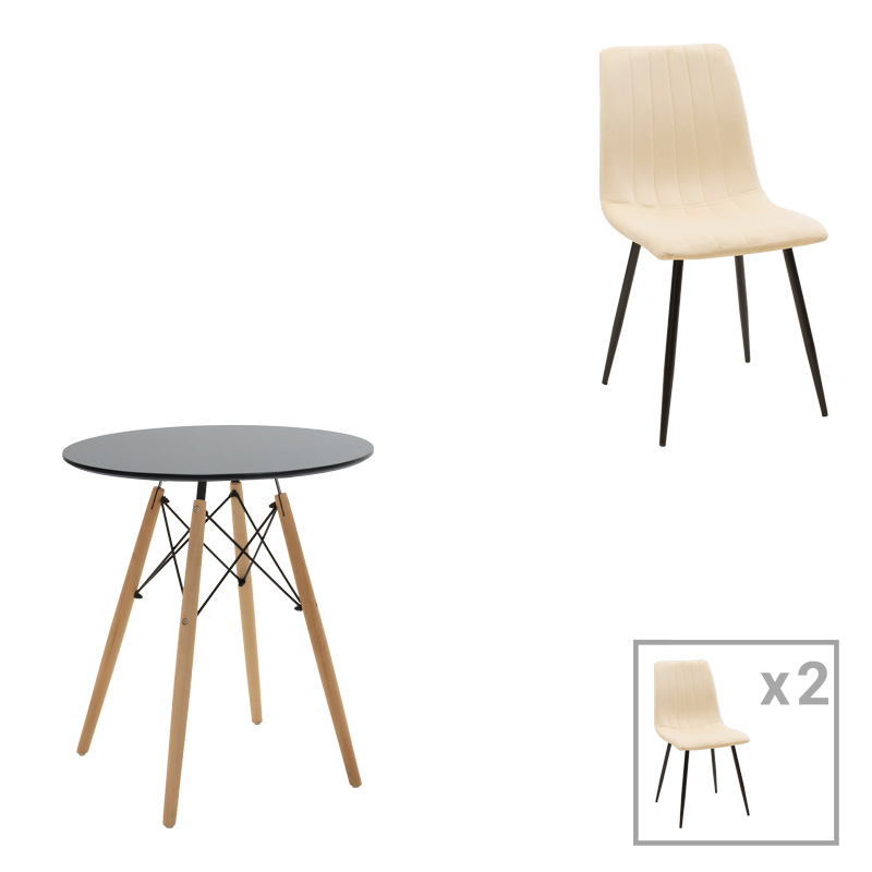 Τραπεζαρία Julita-Noor σετ 3τεμ MDF μαύρο-μπεζ-φυσικό Φ60×73εκ