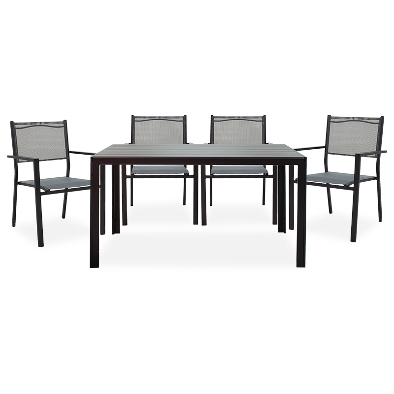 Τραπεζαρία Nares-Moly σετ 5τεμ αλουμίνιο ανθρακι-textilene γκρι