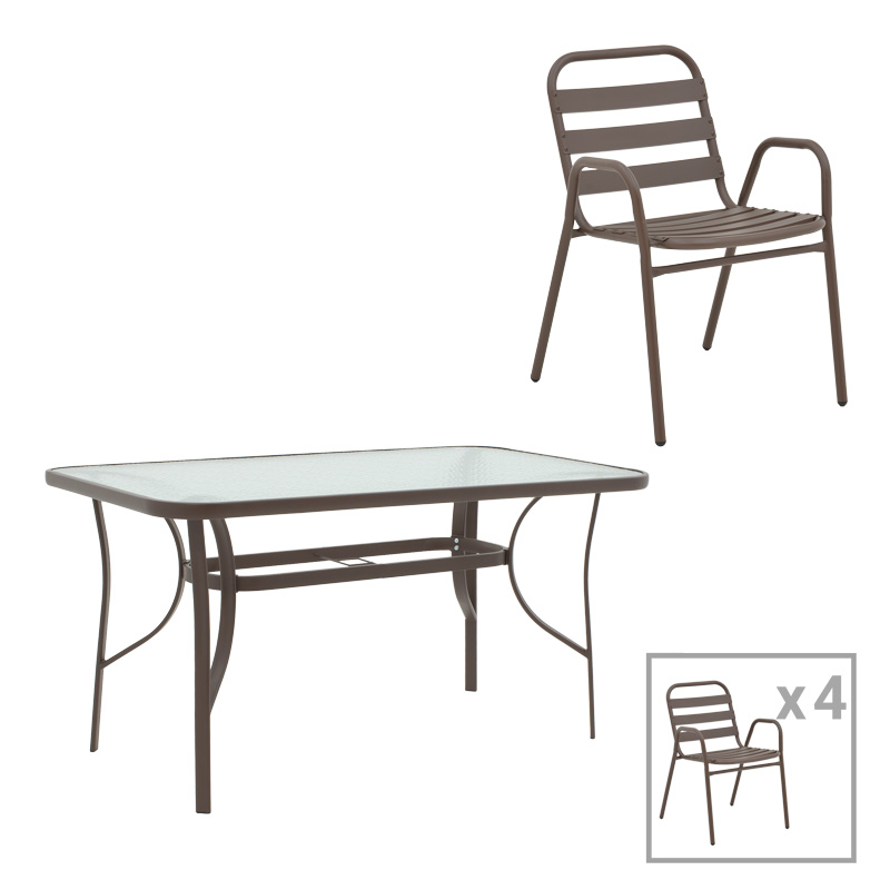 Τραπεζαρία Sussie-Ensure 5τεμ μέταλλο-γυαλί σε καφέ απόχρωση 120x70x70εκ