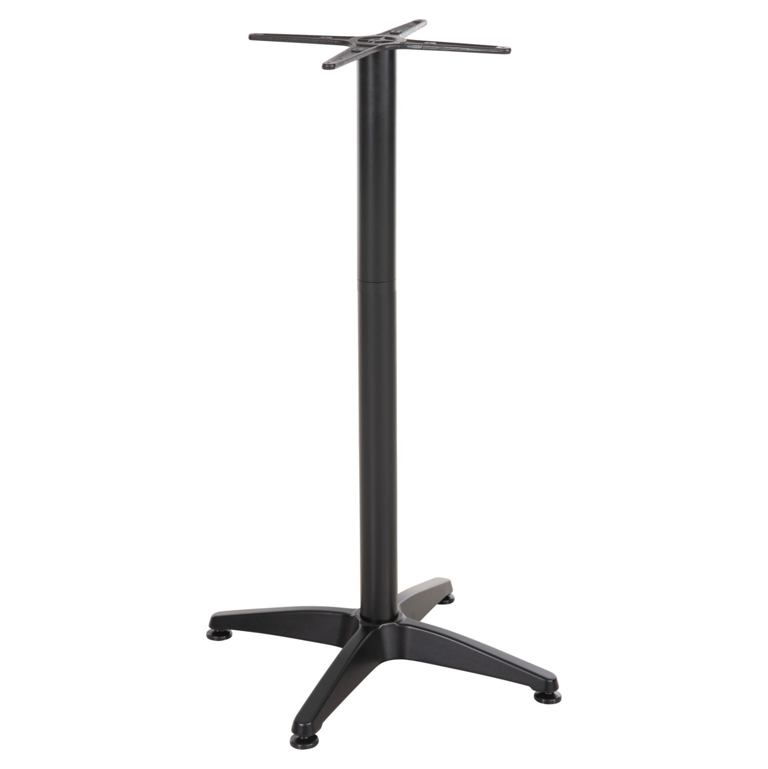 Η ΗΜ450.03 είναι βάση για τραπέζι μπαρ σε ΜΑΥΡΟ ΜΑΤ χρώμα. Αυτή η βάση είναι αλουμινίου με μία κολώνα η οποία στηρίζεται σε μια 4-νυχη βάση. Το χαρακτηριστικό που κάνει αυτή την βάση ιδιαίτερα πρακτική είναι ότι το καπάκι που θα διαλέξετε στηρίζεται σε μια διάταξη «σταυρό», με αποτέλεσμα να μπορεί να δεχθεί τόσο στρογγυλά καπάκια, όσο και τετράγωνα. Επίσης, στο κάτω μέρος της διαθέτει ρυθμιστές ύψους (ρεγουλατόρους). Ιδανική πρόταση για συνδυασμό με επιφάνειες σχεδόν κάθε είδους, όπως βερσαλίτες, HPL, MDF, κτλ.