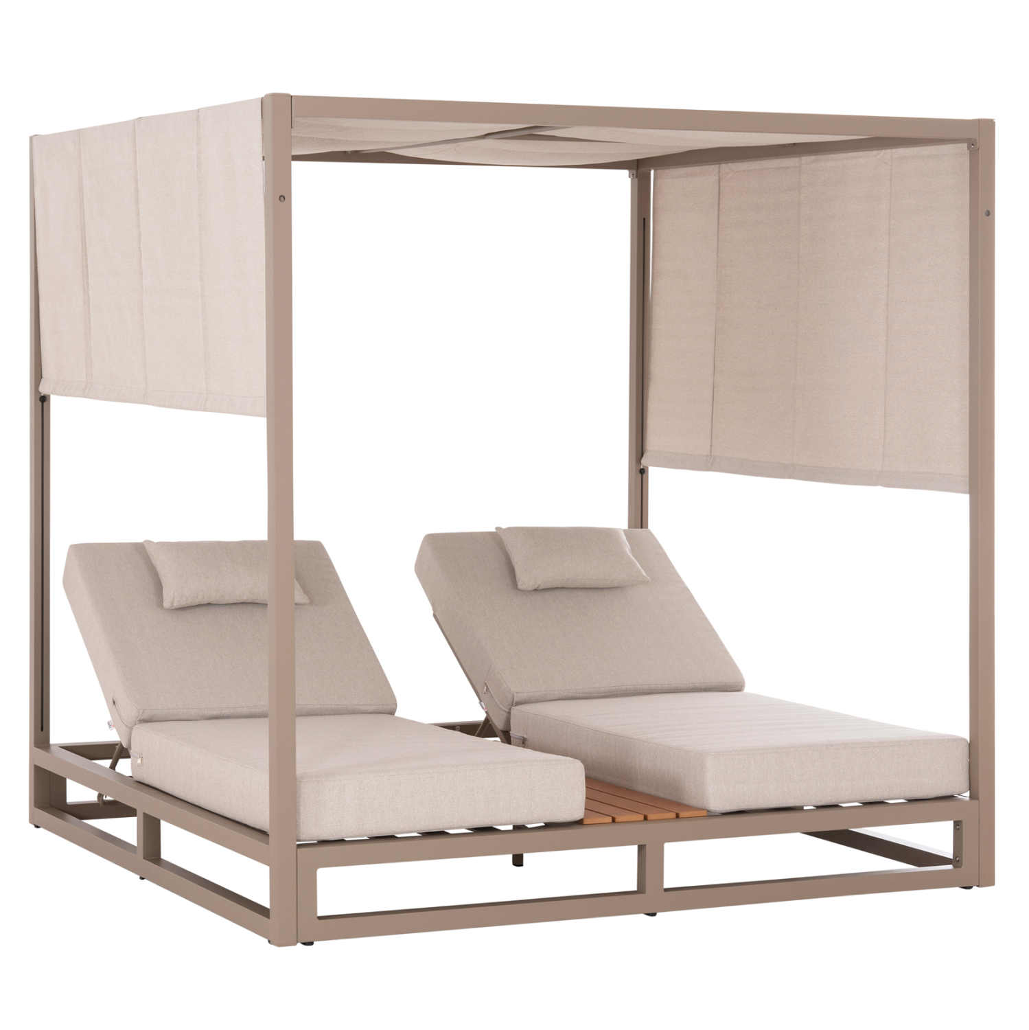 Η επαγγελματική διπλή ξαπλώστρα παραλίας GALLANT σε ΚΑΠΟΥΤΣΙΝΟ χρώμα, είναι μια πολυτελής πρόταση για την επιχείρησή σας. Η στιβαρή και εντυπωσιακή παρουσία της που οφείλεται στο design κύβος αλλά και στα υλικά κατασκευής της, κυριολεκτικά κλέβουν την παράσταση. Το παχύ στρώμα με τα μαξιλαράκια κεφαλής και η επιφάνεια από polywood στην μέση υπόσχονται στιγμές ξενοιασιάς και χαλάρωσης, όπως και το σκίαστρο που προστατεύει από τον ήλιο. TIP: Το σκίαστρο ανεβοκατεβαίνει στις δύο πλευρές ταυτόχρονα με μηχανισμό, μιας και αποτελείται από ένα συνεχόμενο ύφασμα.