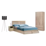Hm312.02- Κρεβάτι ημίδιπλο, με κεφαλάρι, για στρώμα 150×200εκ, με 2 συρτάρια κάτω από το ποδαρικό. Το κρεβάτι είναι σε χρώμα Sonoma και είναι κατασκευασμένο από άριστης ποιότητας μελαμίνη. Η συσκευασία περιλαμβάνει και τις τάβλες του στρώματος και η συναρμολόγηση του κρεβατιού είναι εύκολη.