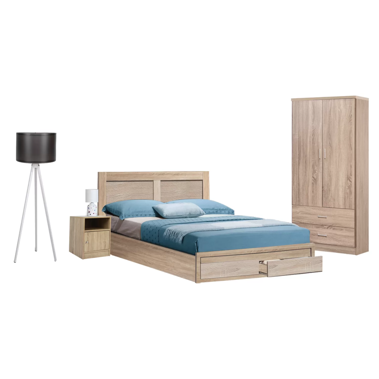 Αυτό το σετ περιλαμβάνει κρεβάτι, κομοδίνο, ντουλάπα, φωτιστικό δαπέδου!