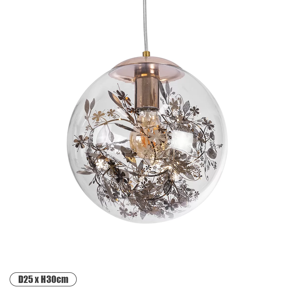 Η σχεδίασή του χαρακτηρίζεται από ένα διάφανο γυάλινο αμπαζούρ, το οποίο περιβάλλεται από μια κομψή χάλκινη (χρυσή) γιρλάντα. Αυτή η λεπτομέρεια προσδίδει μια ζεστή, πολυτελή νότα, μετατρέποντας το απλό φως σε ένα στοιχείο διακόσμησης. Το διάφανο γυαλί επιτρέπει στο φως να διαχέεται ομοιόμορφα και χωρίς εμπόδια, δημιουργώντας ένα ζεστό και καλωσόριστο περιβάλλον στο σαλόνι, την τραπεζαρία, το διάδρομο ή ακόμα και στο γραφείο σας.