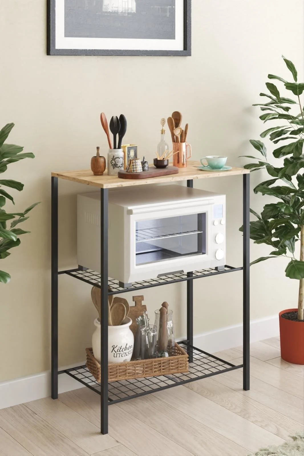 Ραφιέρα κουζίνας βοηθητική κατασκευασμένη από μέταλλο και μελαμίνη υψηλής ποιότητας και ανθεκτικότητας στον χρόνο σε χρώμα σκούρο καρυδί. Ιδανική και κομψή επιλογή για κάθε χώρο καθώς μπορεί εύκολα να εναρμονιστεί με την υπάρχουσα διακόσμηση και να ομορφύνει τον χώρο που θα τοποθετηθεί.