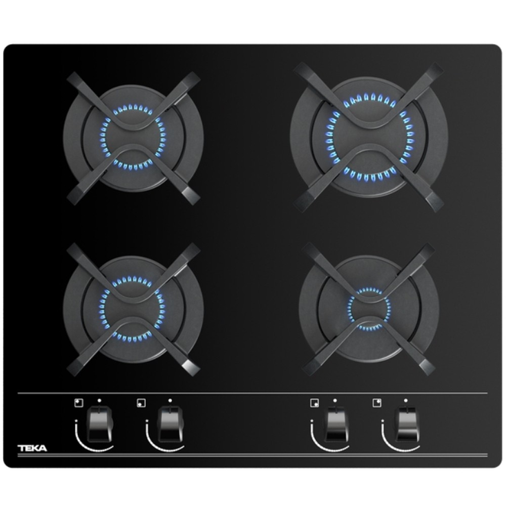 Εντοιχιζόμενη Κρυστάλλινη Εστία Γκαζιού TEKA 4 Ζώνες Χωρίς Πλαίσιο 60cm GBC KBA Μαύρο 112580042