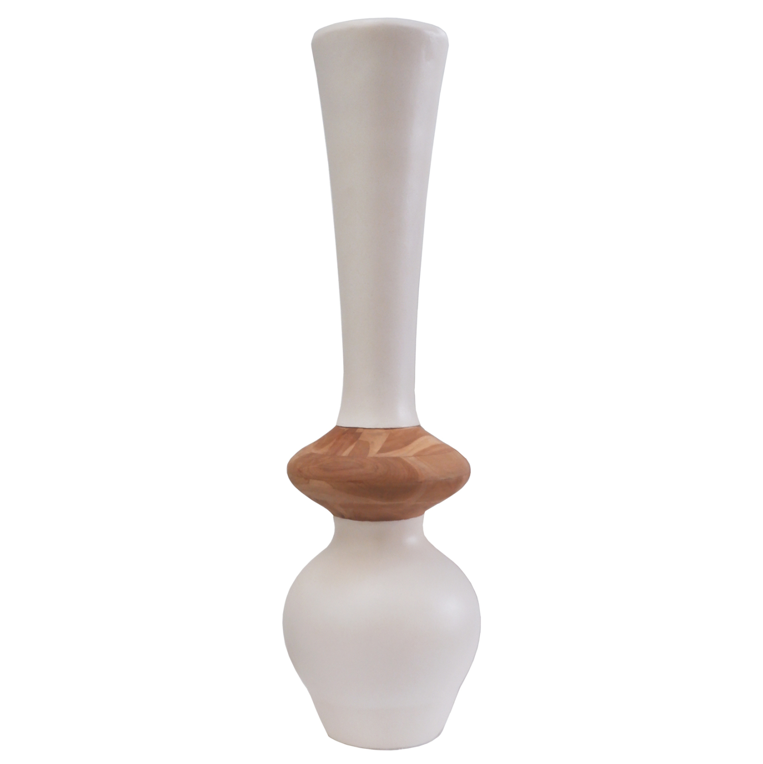 Το χειροποίητο διακοσμητικό βάζο δαπέδου NEBULA είναι ένα πολύ ιδιαίτερο διακοσμητικό στοιχείο για κάθε χώρο. Είναι κατασκευασμένο εξολοκλήρου από Fiber Cement σε ΛΕΥΚΟ χρώμα με διακόσμηση στον λαιμό από ποιοτικό ξύλο Teak, ενώ το ύψος του το καθιστά επιβλητικό στον χώρο. Ιδανικό για πληθώρα χρήσεων και χώρων.